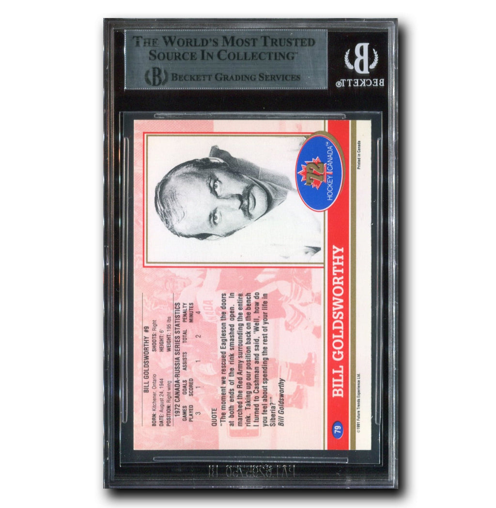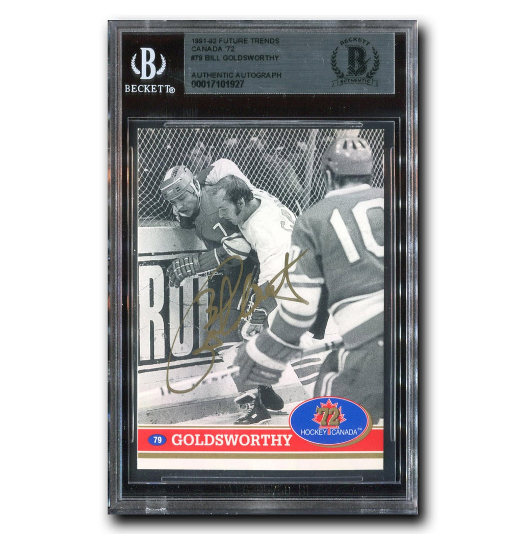 This is your chance to get your very own Bill Goldsworthy Autographed 1991-92 Future Trends Canada '72 #87 GOLD Autograph (Beckett Authentic)! This card is certified by Beckett.