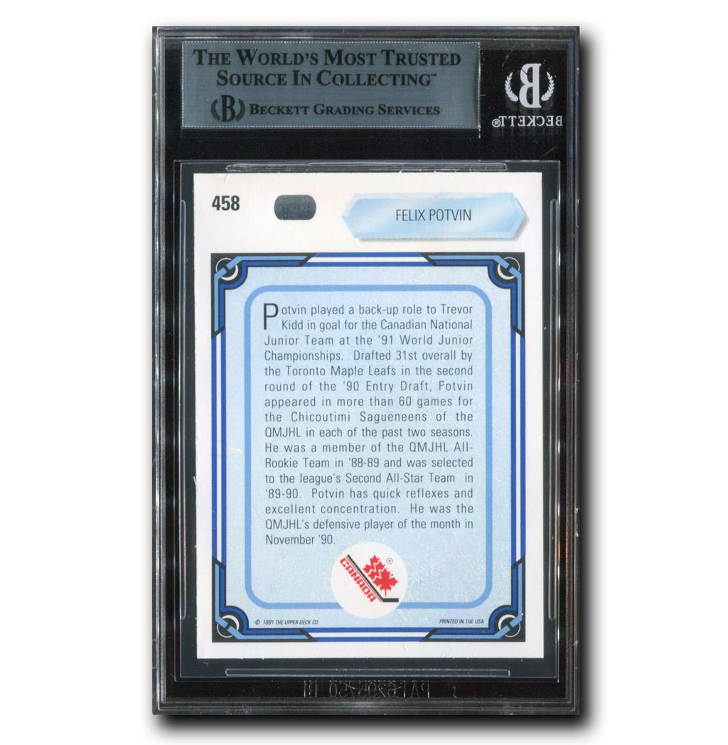 This is your chance to get your very own Felix Potvin Autographed 1990-91 Upper Deck World Junior Champions #458 (Beckett Authentic)! This card is certified by Beckett.