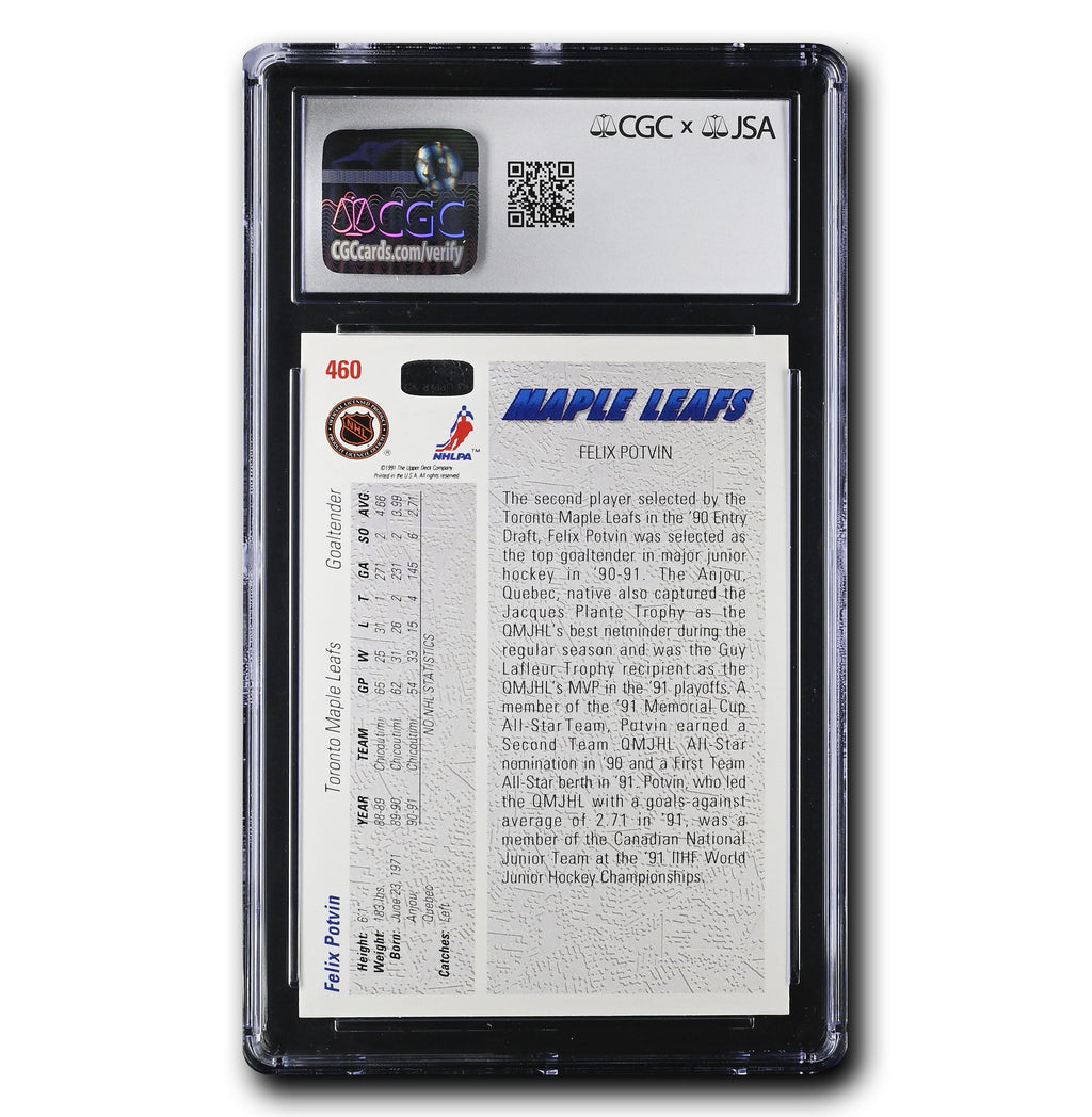 This is your chance to get your very own Felix Potvin Autographed 1991-92 Upper Deck #460 Rookie (CGC 9.5/Auto 10)! This card is certified by James Spence Authentication (JSA) x CGC.