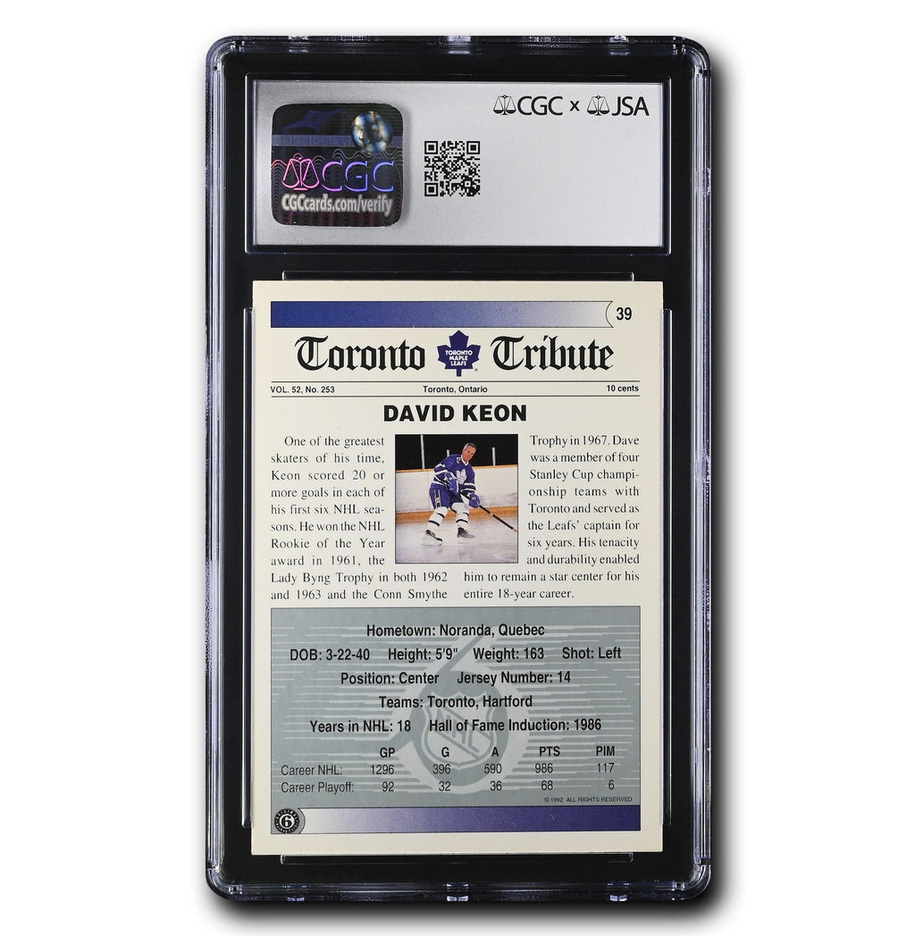 This is your chance to get your very own Dave Keon Autographed 1991-92 Ultimate The Original Six Autographs #39 (CGC Authentic)! This card is certified by James Spence Authentication (JSA) x CGC.
