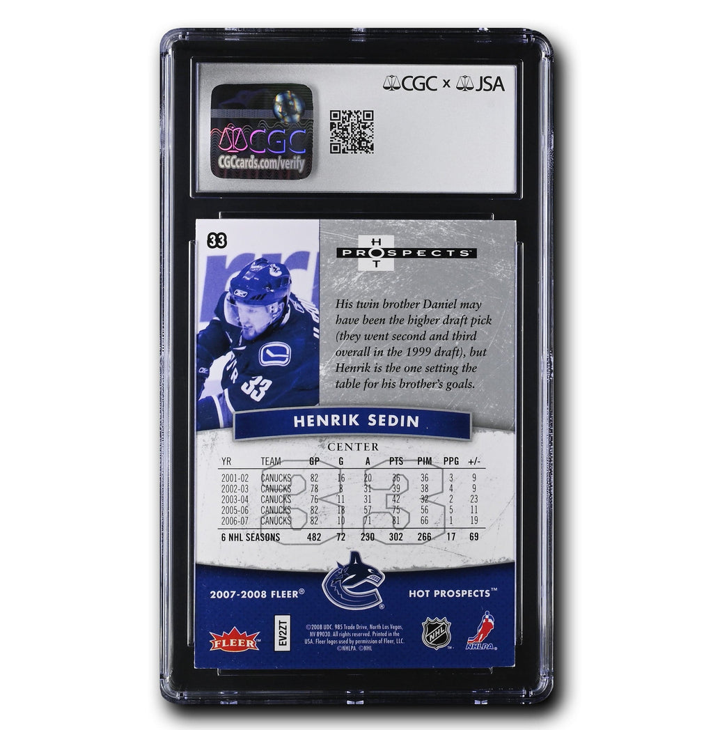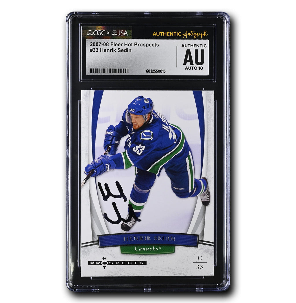 This is your chance to get your very own Henrik Sedin Autographed 2007-08 Fleer Hot Prospects #33 (CGC Authentic/Auto 10)! This card is certified by James Spence Authentication (JSA) x CGC.